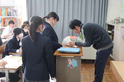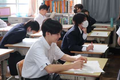 定期テストが返却され、解説が行われていました。その中で、丁寧に正しい漢字を書くことにも触れられていました。