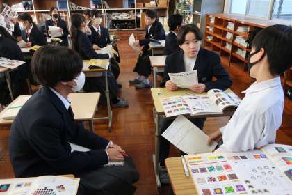「シンボルネーム」の作品づくりに向け、自分の好みの色と仲間が感じるイメージカラーを出し合いながら、ベースとなる色を決定していきます。