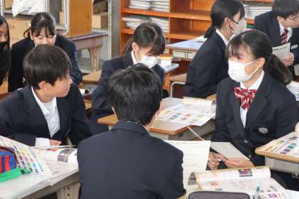 「シンボルネーム」の作品づくりに向け、自分の好みの色と仲間が感じるイメージカラーを出し合いながら、ベースとなる色を決定していきます。