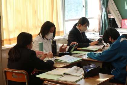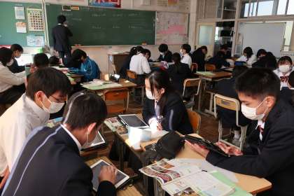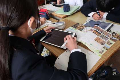 「東北地方の気候と人々のくらし」についての学習で、「年中行事」を調べ、情報を共有していました。