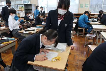 自身の名前をアルファベットで表した「サインボード(表札)」づくりに取り組んでいました。仲間からアイデアをもらったり、作品を参考にしたりして、楽しみながら取り組んでいました。