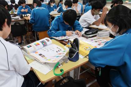「シンボルネーム」の作品づくりに向け、自分の好みの色と仲間が感じるイメージカラーを出し合いながら、ベースとなる色を決定していきます。