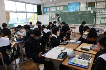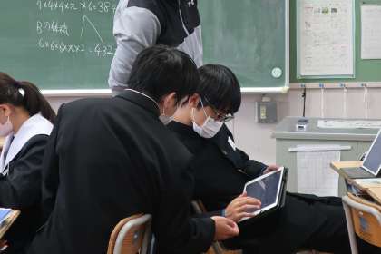 「身のまわりの相似」をテーマに、学習用タブレットのアプリを使って視覚的に相似の学習に取り組んでいました。