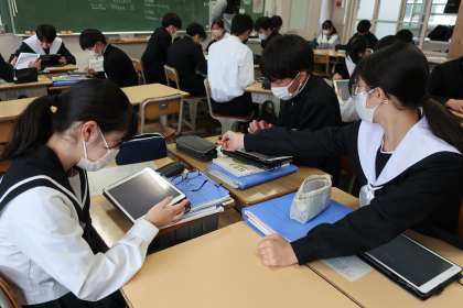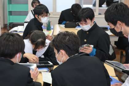 「身のまわりの相似」をテーマに、学習用タブレットのアプリを使って視覚的に相似の学習に取り組んでいました。