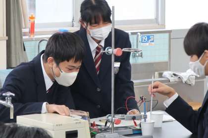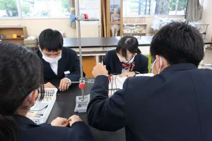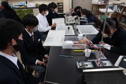 「電力の大きさや電流を流す時間を変えると、水の温度はどのように変わっていくか」をテーマに、電力の大きさと水の温度変化の関係を調べるための実験に取り組んでいました。