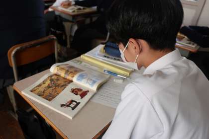 平家物語の「扇の的」という作品の学習で、映像を見たりしながら平家物語の基礎知識を学んでいました。