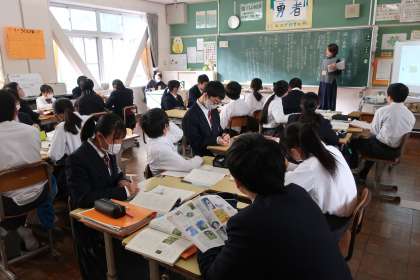 「言葉をもつ鳥 シュジュウカラ」の単元で、「論の展開について、観点ごとにまとめよう」をテーマに学習に取り組んでいました。