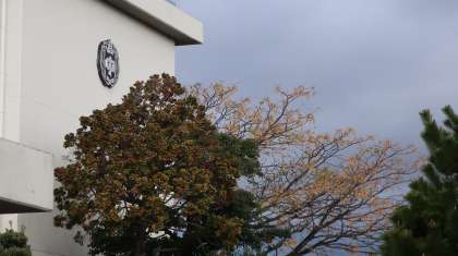 冬の澄んだ青空に映える黄色や白のセンダンの実。鑑賞を楽しめる校内の植物の一つです。