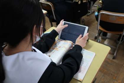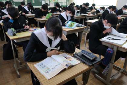 3年5組の社会・公民分野の授業(金曜日)の様子です。