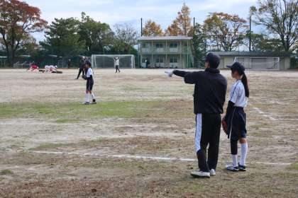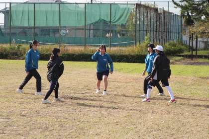 市外の中学校に来校いただき、合同練習・練習試合を行っていました。引退した3年生部員も参加してくれ、後輩たちのアップや活動のサポート、アドバイスなどで活動を盛り上げてくれました。