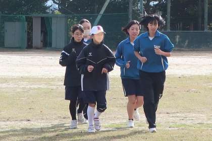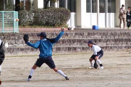 市外の中学校に来校いただき、合同練習・練習試合を行っていました。引退した3年生部員も参加してくれ、後輩たちのアップや活動のサポート、アドバイスなどで活動を盛り上げてくれました。