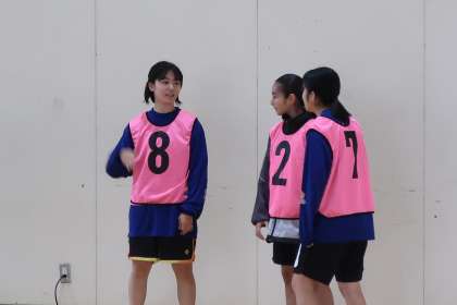 得点につながる攻め方や相手を苦しめる守り方を、自分たちで考えて練習していました。