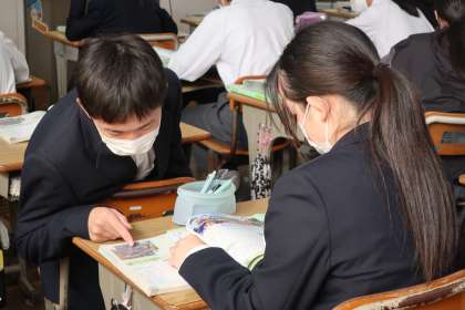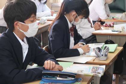 2年2組の社会・地理分野の授業の様子です。