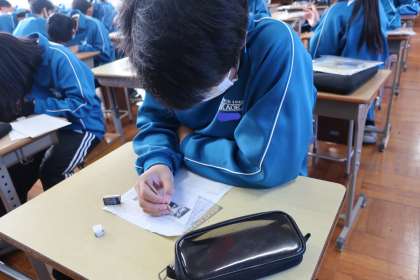 自身の名前をアルファベットで表した「サインボード(表札)」づくりに取り組んでいました。先生からアイデアをもらったり、仲間の作品を参考にしたりして、楽しみながら取り組んでいました。