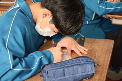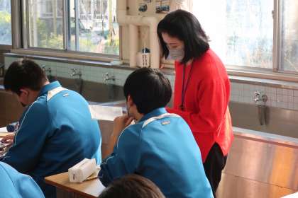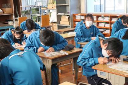 自身の名前をアルファベットで表した「サインボード(表札)」づくりに取り組んでいました。先生からアイデアをもらったり、仲間の作品を参考にしたりして、楽しみながら取り組んでいました。