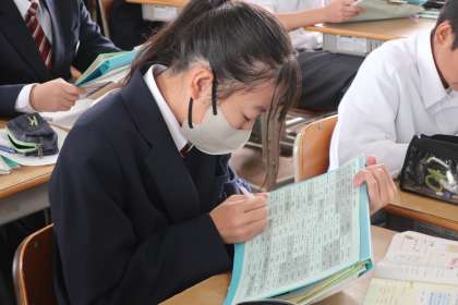 新出単語や教科書の英文のリーディングに取り組んでいました。声の大きさもバッチリです。