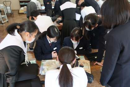 12/4 2-1 仲間から学ぶ 4 公開日 2024/12/05 更新日 2024/12/05 各学年から 2年1組の技術科の授業の様子です。 プログラミングの学習で、仲間のつくったゲームソフトを試しています。登場するキャラ—クターの動きを参考にしたり、ストーリーも一緒に学んでいました。
