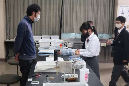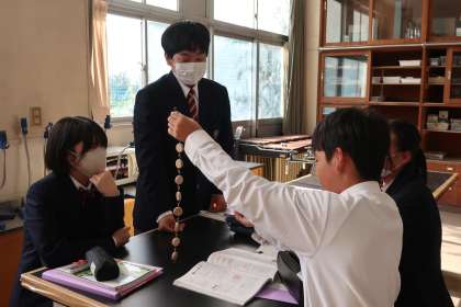 おもりを使って力の大きさを調べる実験に取り組んでいました。