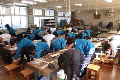 木製品の製作がはじまり、のこぎりを使った活動に一斉に取りかかっていました。