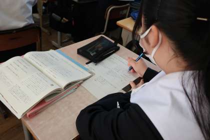 「いにしえの心を受け継ぐ」をテーマに、短歌で相手に想いを伝える学習に取り組んでいました。