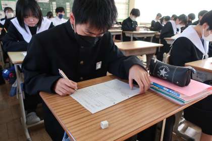 12/5 3-2 いにしえの心 2 公開日 2024/12/05 更新日 2024/12/05 各学年から 3年2組の国語の授業の様子です。 「いにしえの心を受け継ぐ」をテーマに、短歌で相手に想いを伝える学習に取り組んでいました。