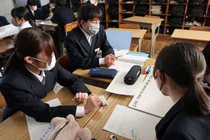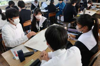 三角形が合同であることの証明の仕方を仲間と共有し、グループでまとめていました。