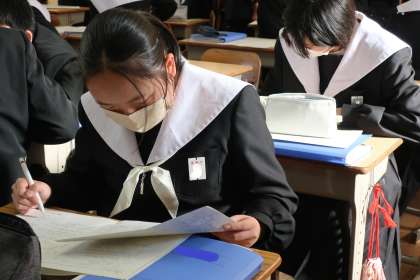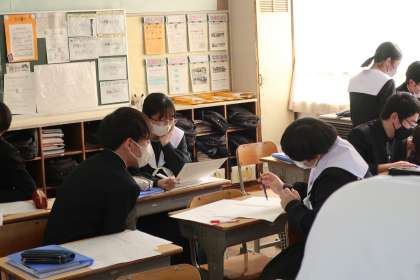 先日実施された『プレ学診』の問題の解き直しに取り組んでいました。仲間の解き方も参考にしながら、来週木曜日の本番に向けて本気の追い込みが始まります。