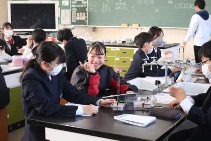 「コイルを流れる電流がつくる磁界」を確かめるための実験を通して、仲間へ説明をしながら理解を深めていました。