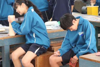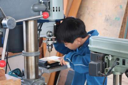 木製品(小物仕分け箱)づくりに取り組んでいました。紙やすりやキリといった手作業のもののほか、ベルトサンダーなどの機械を使った作業にも取り組んでいました。