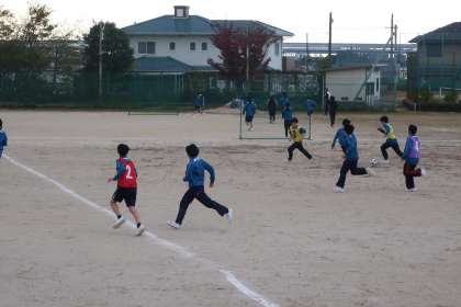 サッカーのゲームが行われていました。今週も授業開始前から運動場をランニングし、ゲームでも走り続けている様子に感心しました。
