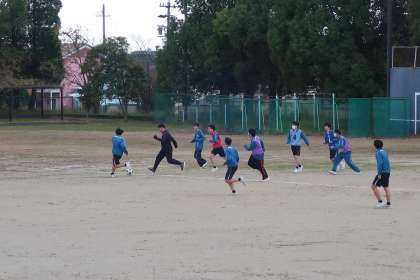 サッカーのゲームが行われていました。今週も授業開始前から運動場をランニングし、ゲームでも走り続けている様子に感心しました。