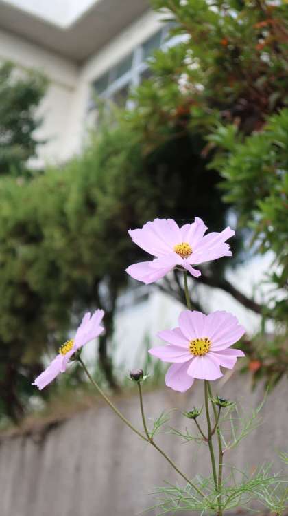 寒さが厳しくなった今でも、校内では頑張って咲くコスモスを見かけます。
