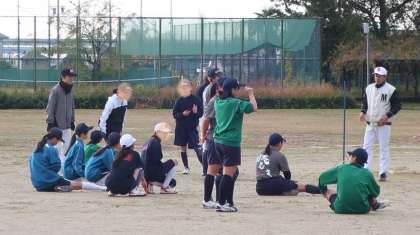 前林中・竜神中の生徒たちと合同での練習です。お互いを励ます声が、生徒はもちろんコーチたちからも飛び交います。非常に明るい雰囲気で一生懸命練習に励んでいました。