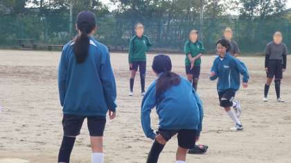 前林中・竜神中の生徒たちと合同での練習です。お互いを励ます声が、生徒はもちろんコーチたちからも飛び交います。非常に明るい雰囲気で一生懸命練習に励んでいました。