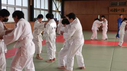 地域指導者の熱心かつ丁寧な指導で、生徒たちもやる気を出して取り組んでいました。技の基本を繰り返し練習して、一つでも多く身につけるられるよう頑張っています。