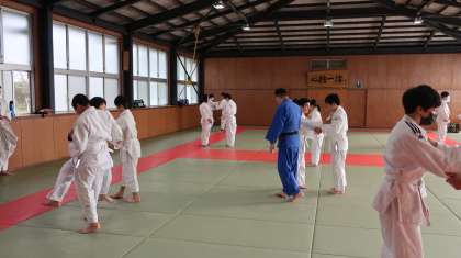 地域指導者の熱心かつ丁寧な指導で、生徒たちもやる気を出して取り組んでいました。技の基本を繰り返し練習して、一つでも多く身につけるられるよう頑張っています。
