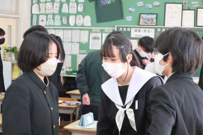 明後日には『学習診断テスト』を控えている3年生。進路実現に向けて大切なテストとなるため緊張が高まりますが、今朝のこのひと時は、いつもどおりの笑顔を見ることができました。