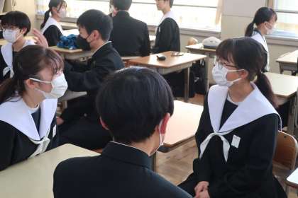 明後日には『学習診断テスト』を控えている3年生。進路実現に向けて大切なテストとなるため緊張が高まりますが、今朝のこのひと時は、いつもどおりの笑顔を見ることができました。