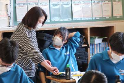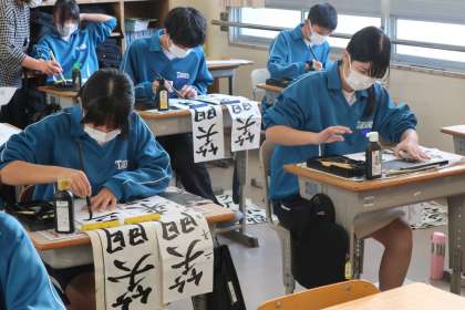 冬休み明けに行われる『書き初め大会』に向けての練習が始まっていました。2年生の課題は『笑門来福』です。