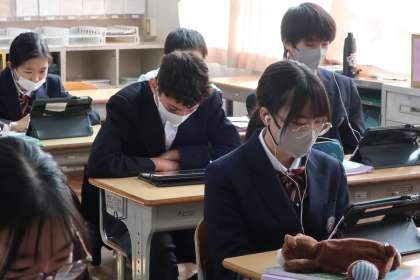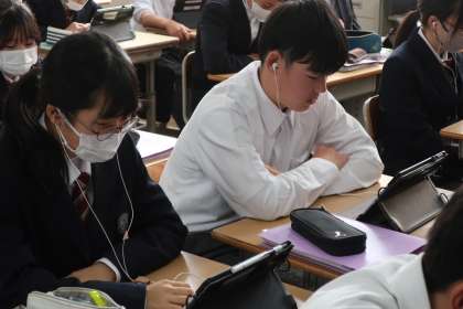 単元のまとめとして、各自が理解が不十分だと思っている内容を学習用タブレットで確認していました。
