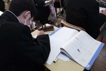 先日のプレ学診、この週末の家庭での学習を経て、いよいよ本番に向けた最後の追い込みが始まっています。理解が不十分な内容の問題を何度も解き直していました。