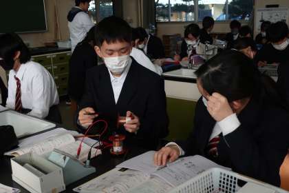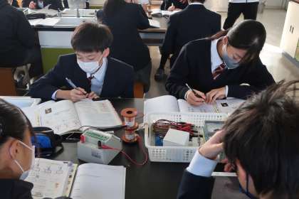 誘導電流について学びを深めるため、実験を通してその性質を確認していました。