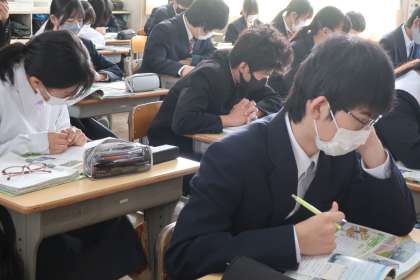 2年4組の社会・地理分野の授業の様子です。