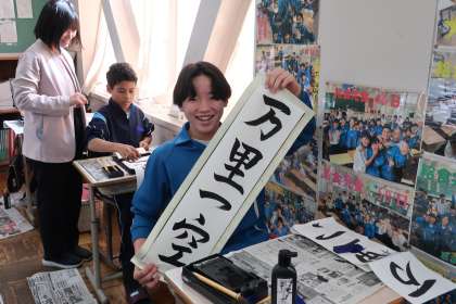 冬休み明けに行われる『書き初め大会』に向けての練習が始まっていました。1年生の課題は『万里一空』です。