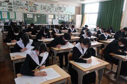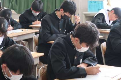 先日の個別懇談会で確認した進路先の合格に向け、現在身につけている学力がどのくらいかを確認するための重要なテストです。得意・不得意はあっても、どの教科にも一生懸命取り組んでいました。