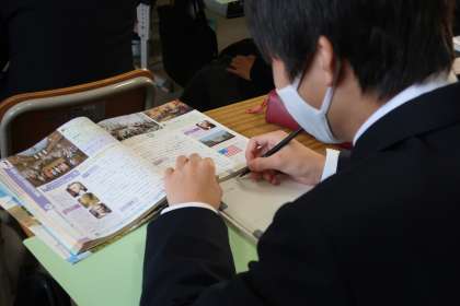 「欧米諸国の政治はどのように変化し、発展していったのだろう」をテーマに、イギリスやアメリカでの革命、思想家などの影響について学習していました。