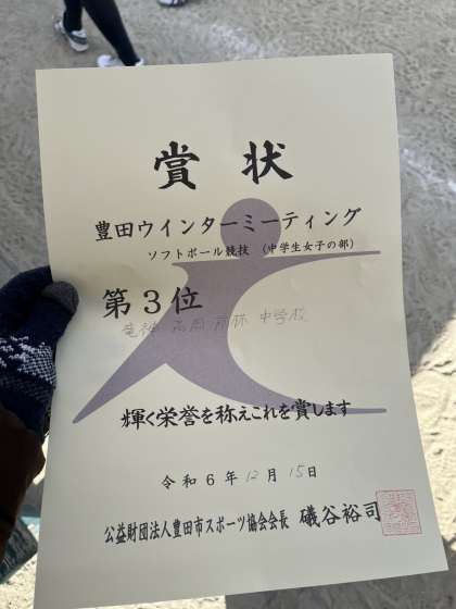 『豊田ウインターミーティング(豊田市中学生ソフトボール大会)』が、昨日から2日間の日程で豊田市運動公園で開催されました。