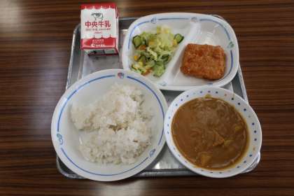 12/17 今日の給食 公開日 2024/12/17 更新日 2024/12/17 特別活動 今日の献立は ————— カレーライス(麦ごはん)、サワーキャベツ、たらフライ、牛乳 でした。 *エネルギー:941kcal たんぱく質:31.8g