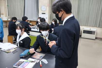 ストローや塩ビ管などをこすって、『静電気』の性質を確かめる実験に取り組んでいました。