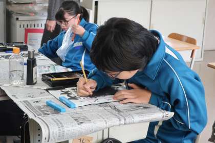 書き初めの練習に取り組んでいました。作品が出来上がるまで、しっかりと集中して書き込んでいました。